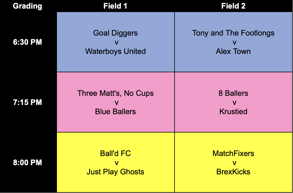 - Grading Fixtures Release Date: Tuesday, 28th Oct @ 5:00pm (Captains notified via text message).